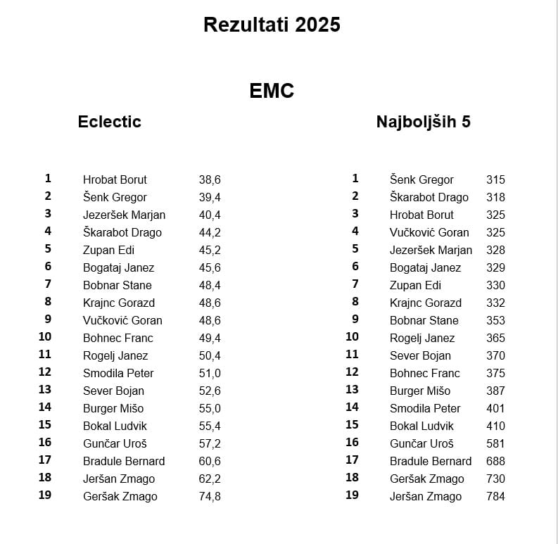 Zaključek ELC/EMC sezone 2025, ki je bil zaradi slabega vremena prestavljen za 14 dni, je bil v skoraj idealnem vremenu izpeljan v soboto 18.10. na igrišču Brdo, kjer so potekala tekmovanja ob sredah in četrtkih od 14.5. do 2.10. Sodelovalo je, vsaj enkrat, 17 tekmovalk in 19 tekmovalcev. Igrišče je bilo letos nekoliko spremenjeno tako, da je omogočalo tudi igranje za HCP, s tem pa je postalo tudi nekoliko bolj zahtevno.