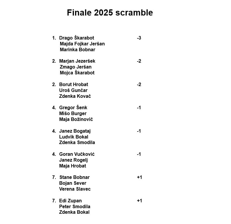 Za zaključek sezone smo odigrali turnir v scramble igri katerega se je udeležilo 24 igralk in igralcev, ki smo sodelovali v tem tekmovanju. Igra je potekala v sproščenem vzdušju in dokaj hitro, saj smo potrebovali le dve uri in pol za zaključek turnirja.
