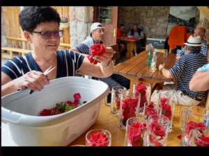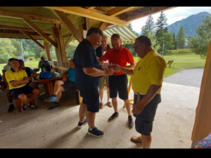 Po zaključku igre so nam Kranjskogorci pripravili, kot po navadi, kosilo: odojka na žaru s prilogami in sladico. Po kosilu sta predsednik Bobnar in Anton Čižman, ki je prispeval nagrade za najboljše, razglasila rezultate in podelila priznanja.